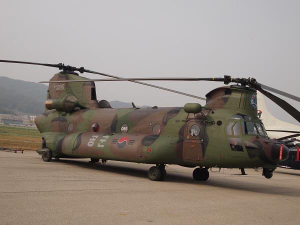 [2009 에어쇼 당시 야외에 전시된 CH-47. 태극무늬 옆의 줄무늬가 태극기의 궤 모양으로 변경되었다.]