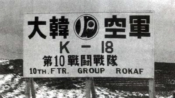 [대한 공군 제 10 전투전대. K-18은 강릉기지를 뜻한다. 가운데 있는 마크는 현재도 제 10전투비행단이 사용 중이다(비행단이 더 규모가 크며, 보통 비행단 하나가 하나의 기지를 사용한다. 육군의 사단 정도의 위치라고 보면 된다. 비행전대는 비행단보다 규모가 더 작아서 육군으로 치면 대대정도의 규모이며, 경우에 따라서는 비행단에 소속되어 있지 않고 독립된 지위를 갖기도 한다(다만 비행장의 운용 등에 대한 인력은 비행단의 도움을 받는 경우가 대부분이다).]