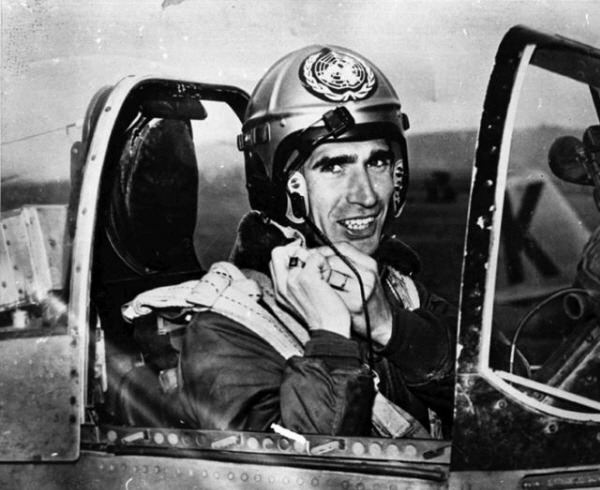 [F-51 조종석에 앉아 있는 딘 헤스 소령. 헬멧에는 UN군임을 상징하는 표시가 붙어 있다. 사진 오른편에 어렴풋이 한국군임을 뜻하는 K가 적혀 있는 F-51D의 꼬리부분이 보인다. 딘 헤스는 본래 목사였으나 진주만 공습 이후 미 공군에 입대하여 P-47 전투기를 조종하였다. 전쟁이 끝난 뒤에는 예비역 신분이 되었으나 1948년 다시 소집되어 일본에서 근무하였다. 이후 바우트-1 프로젝트에서 미국 군사고문단과 초기의 우리 공군 조종사들을 이끌었다. 그는 1950년 12월 무렵, 중국의 개입에 의해 서울이 위험해지자 상부에 요청하여 수송기 15대를 편성하여 1,000여명의 아이들을 안전한 제주도로 후송하기도 했다. 휴전된 이후 <Battle Hymn(전장의 찬송가)>라는 자서전을 내기도 했으며, 그의 일대기는 영화로도 제작되었다.]