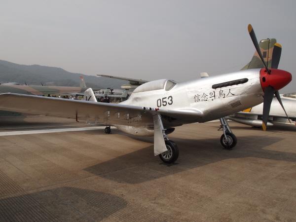 [지상에서 프로펠러를 돌리며 이륙준비를 하고 있는 우리 공군의 F-51D.]