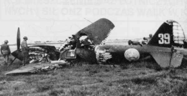 [F-82G가 Yak-9 편대를 내쫓은지 얼마 안되어 북한군은 다시 IL-10 공격기들을 김포에 보냈다. 그러나 호위기조차 붙어 있지 않던 이 IL-10은 대기중이던 F-80 전투기들에게 격추당했다. 사진은 이때 격추당한 북한군의 IL-10 공격기]