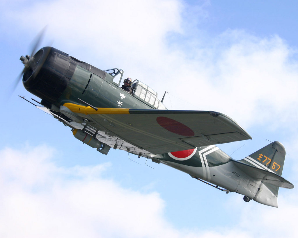 [영식함상전투기로 불리는 제로센은 장갑을 희생한대신 경쾌한 운동성과 긴 항속거리 그리고 뛰어난 무장을 장착한 일본해군의 주력기로 개전부터 종전까지 개량되어 내내 사용되었다]