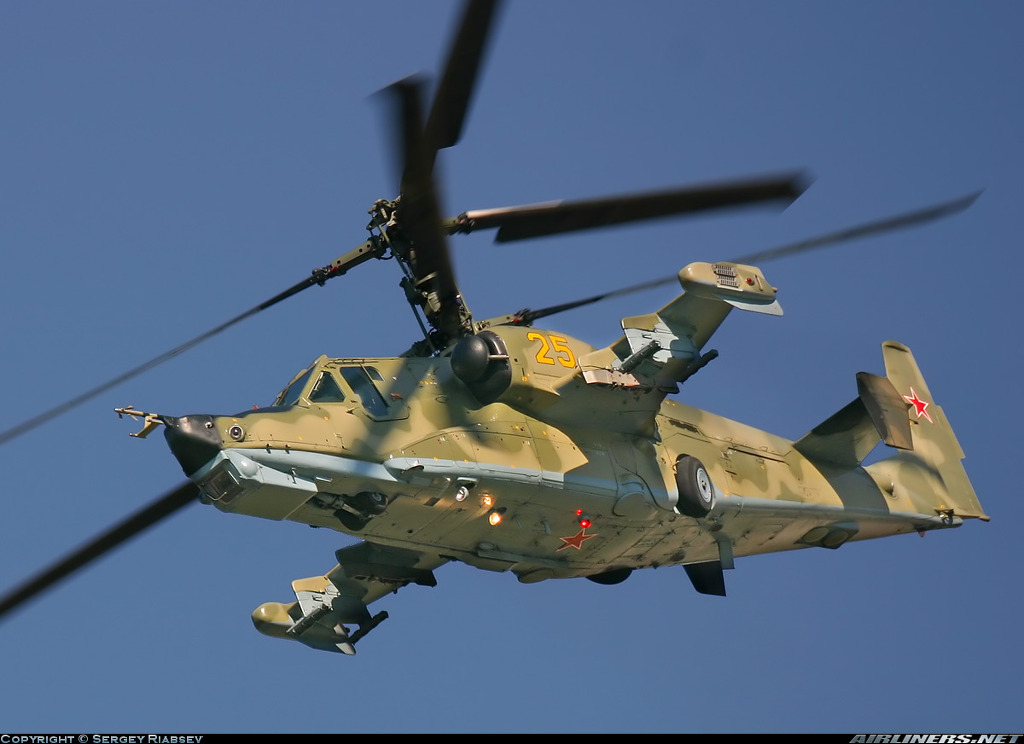 [ka-52 는 Ka-50 처럼 단좌형이 아닌 복좌형 기체이며 엘리게이터 Alligator 라는 별명으로 더 유명하다 이 기체는 세간의 이야기와는 달리 1인승의 문제점 때문이 아니라 아파치 롱보우처럼 4대1이나 5대1로 섞어서 쓰는 일종의 지휘관기이다. 초반개념은 여기에 더하여 Ka-52에 추가로 탑승하는 승무원은 사수가 아닌 지휘관이며, 공격/조종은 여전히 조종사 혼자 수행하는 것이었다. 뛰어난 자동화로 1명만 있어도 작전에 문제가 없다는 판단이었던 셈. 다만 최근 공개된 Ka-52는 조종사석 옆에 동승하는 승무원이 부조종사/사수임이 확인되었다. 아마 지휘관 사양이 따로 있거나, 혹은 현재는 적용되지않는 개념인듯 하다.]