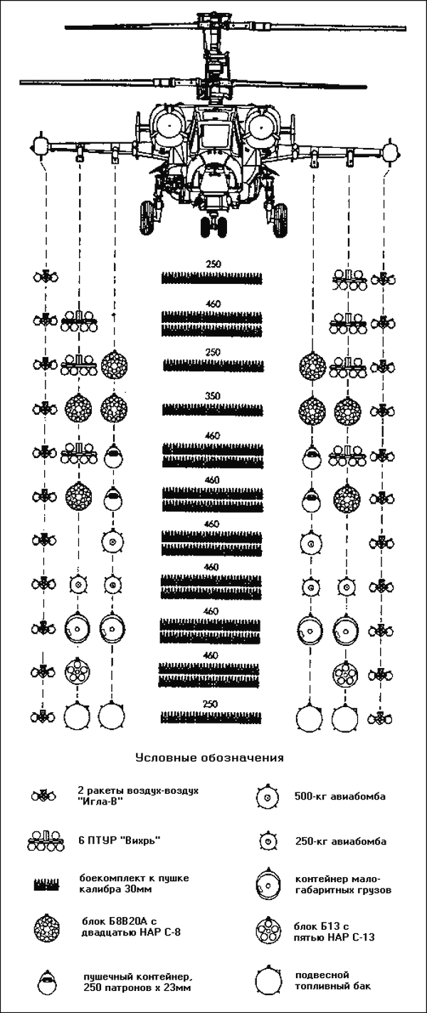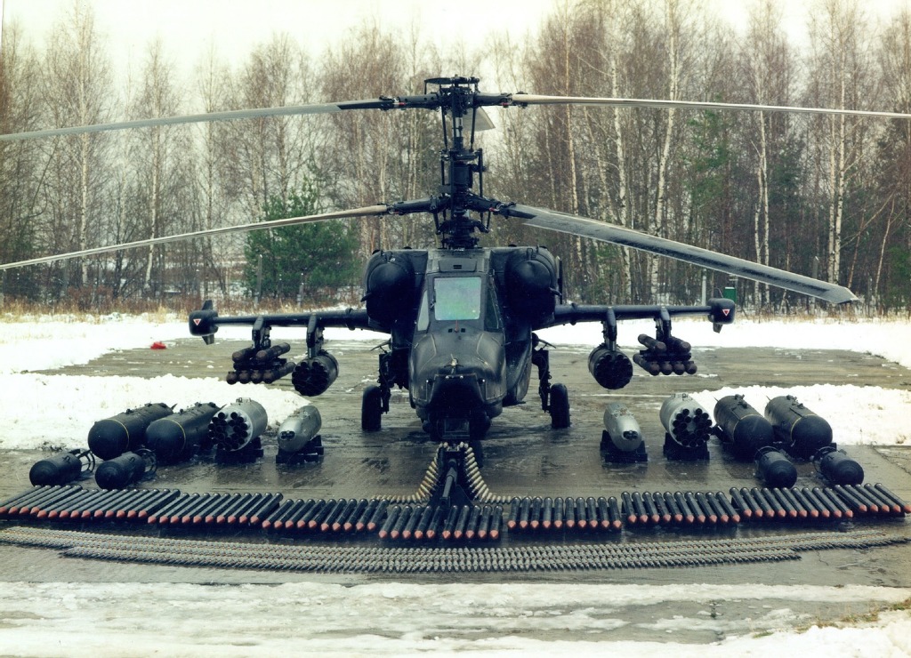 [ka-50의 경우 총 9톤의 다양한 공대지 공대공 무장을 탑재할수 있고 러시아 헬기답게 방탄력과 기체설계가 매우 튼튼하게 되어 있어 공격헬기로 사용하기에는 딱 안성맞춤인 기체이다]