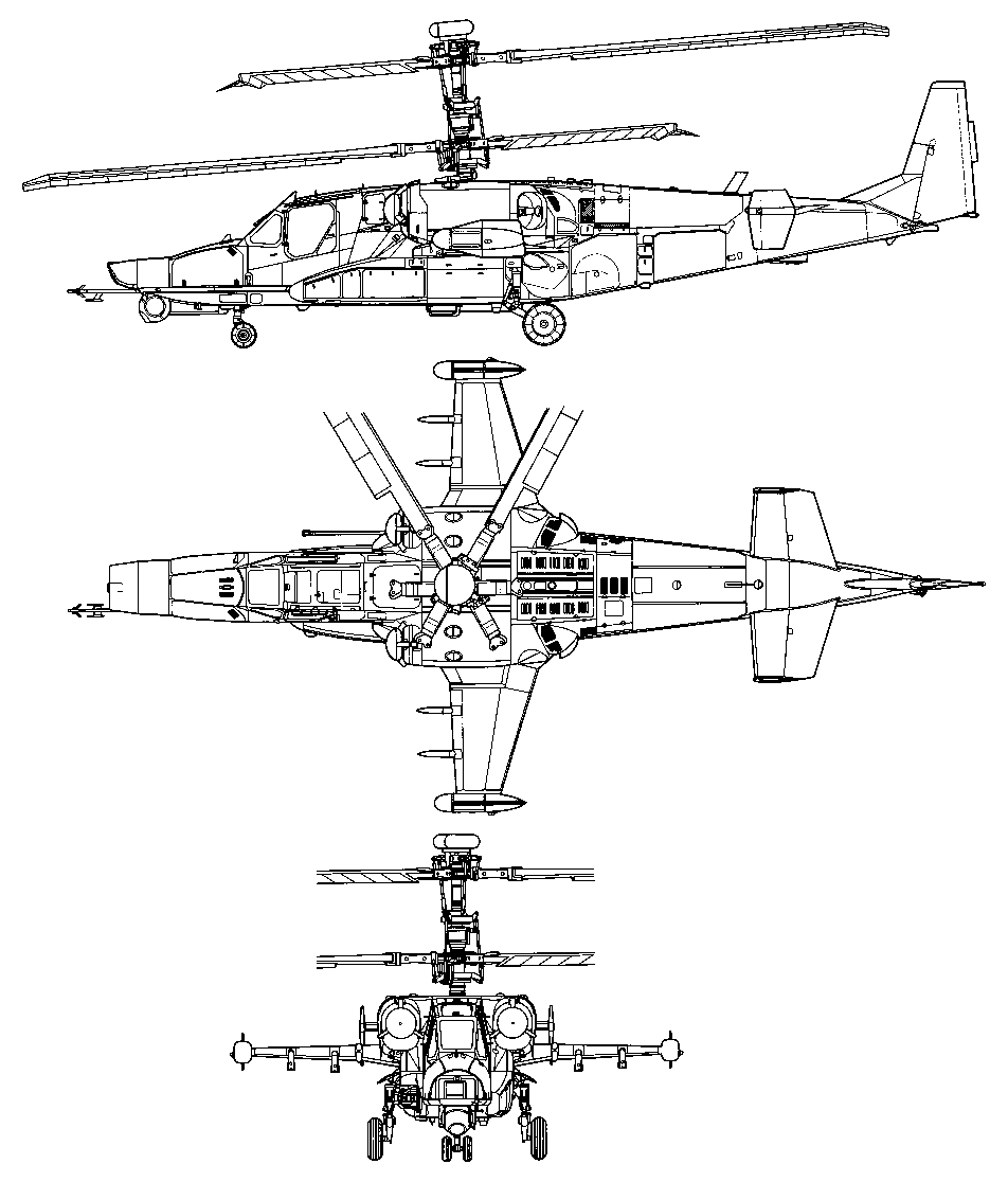 [호컴은 보통 2인승으로 운용되는 다른 공격헬기와는 달리 1인용으로 제작되어졌으며 대신에 남는 중량을 대부분 방호력에 돌린경우이다. 이로인해 어느 공격헬기보다 방호력이 매우 뛰어나며 30밀리 2A42 30mm 기관포의 탑재로 기본적은 공격력 역시 매우 뛰어난 기체로 애시당초 이 기체는 아팟치 같은 공격헬기를 공중전으로 잡을 생각으로 설계된 기체라 공중전에 있어 최고의 성능을 가진 기체라 해도 과언이 아니다.]