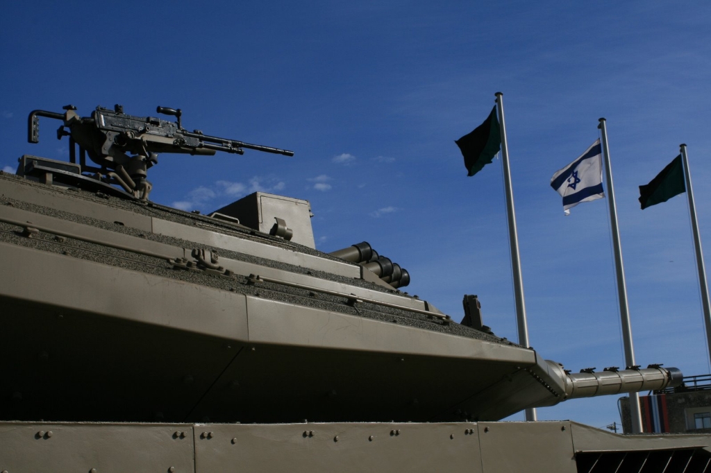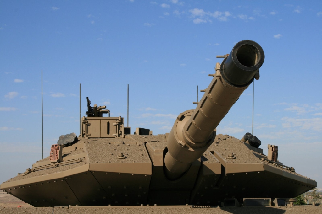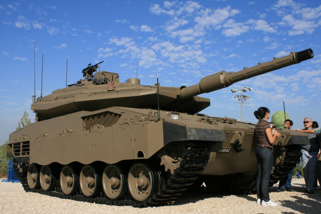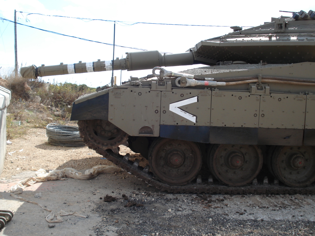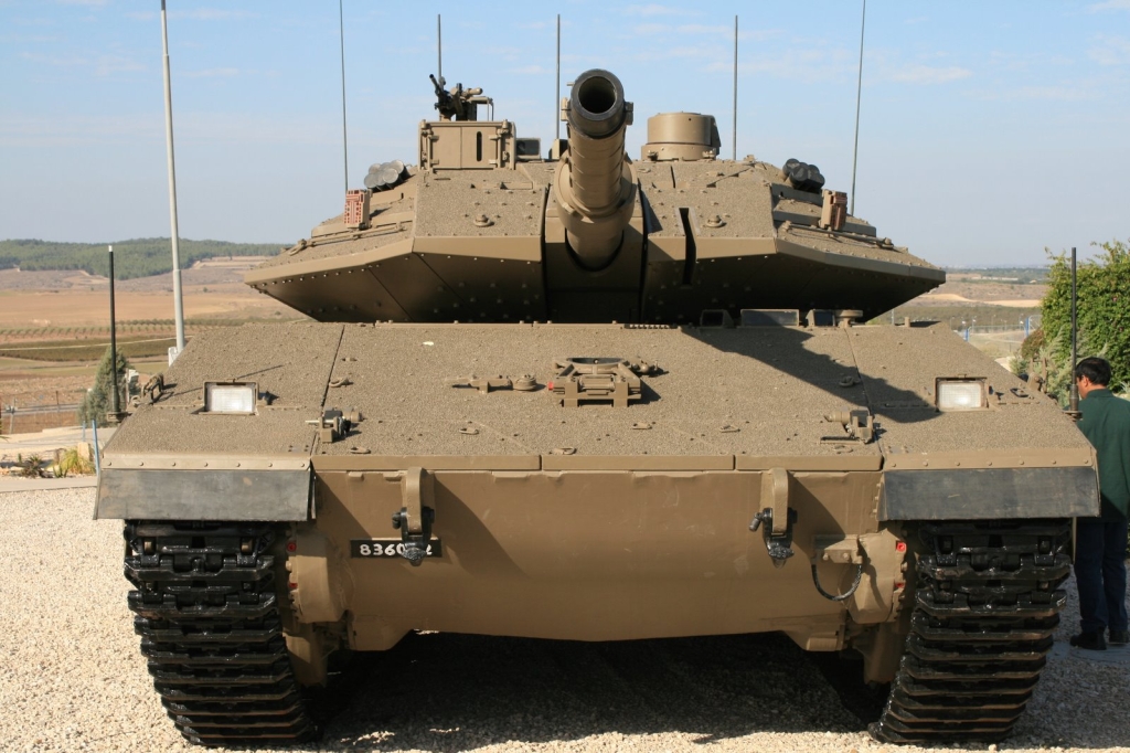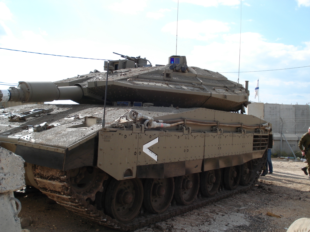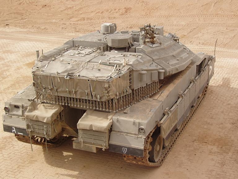 프론트형 엔진을 채택한 이스라엘 메르카바 전차 특유의 형태를 잘 보여주는 사진