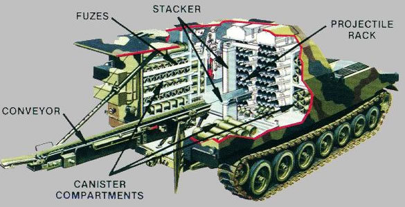M109A2; M185 155 mm유탄포 및 M178포가를 사용, 탄약 탑재량 28발에서 36발로 증가