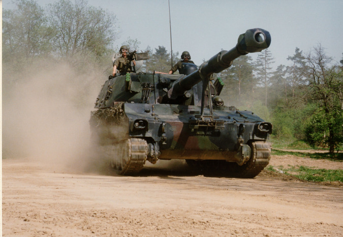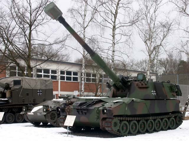 [현재 최고의 자주포로 불리는것이 바로 사진의 PZH-2000 이다. 이는 독일이 개발한 최신의 자주포 이지만 가격이 비싸고 정치적인 문제로 수출의 제한이 있어 K-9 이 각광받는 이유중 하나이다.]