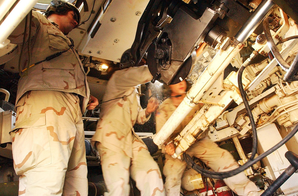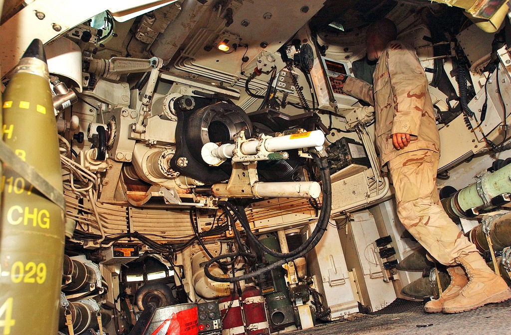 [미군 장비이고 후방에서 운용하는 장비답게 전투실 내부는 꽤 넓은편이다. 거대한 덩치의 미군 4명이 들어가도 넉넉한 수준]