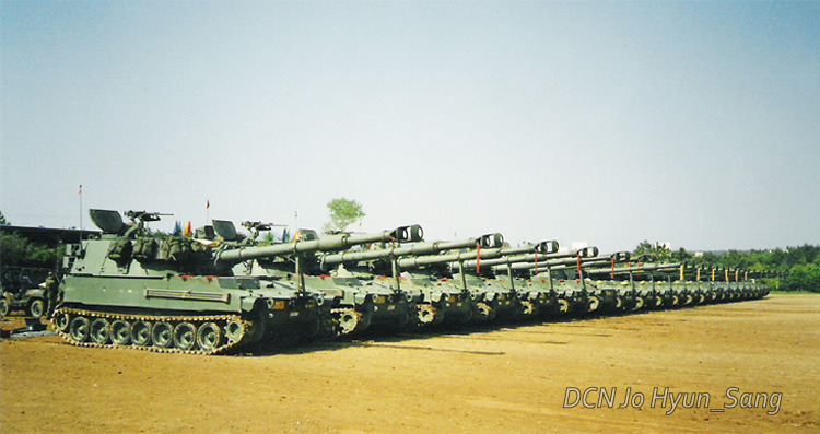 [한국군은 1970년대 말과 80년대 초중반 미군으로부터 공여받은 ‘M-107’ 175㎜ 자주포와 ‘M-110’ 203㎜ 자주포 등이 있긴 했으나 숫자가 부족했고 이들 자주포들은 승무원들이 그대로 노출되는 무포탑 형태였기 때문에 생존성이 떨어졌다. (더욱이 이들 175mm 와 203mm 포탄들은 155mm 와는 달리 국산화 하지 않았기 때문에 재고량도 충분치 못했다 그런 이유로 결국 M107과 M110은 모두 퇴역조치했다)]