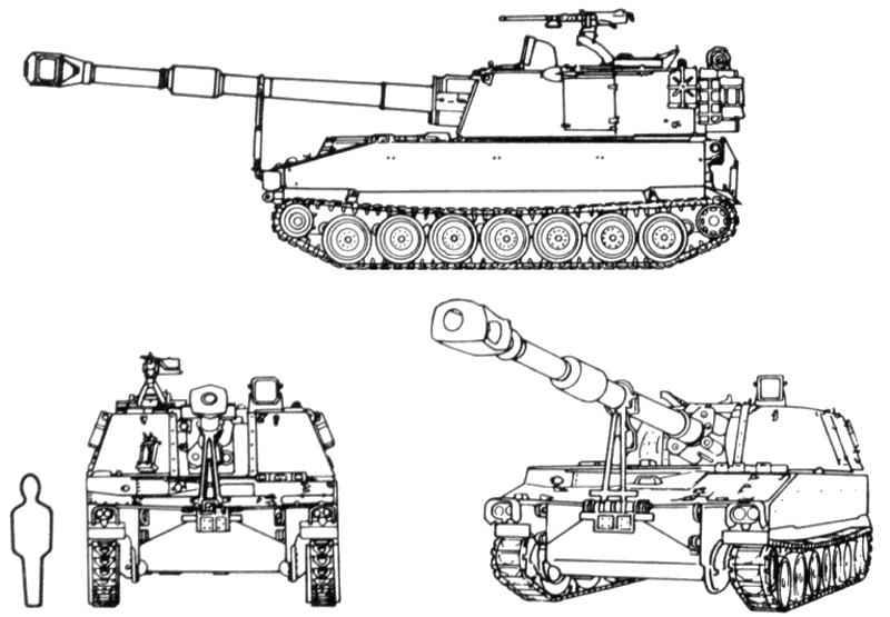 우리육군의 주력 자주포인 K-55의 원형인 M-109A2 자주포는 이전모델인 M-109A1을 개량한 것으로 주요 개량사항으로 주포를 포신이 더 긴 M185로 교체해 사정거리를 최대사정거리를 24㎞(RAP탄)까지 연장시켰으며 무거워진 포를 위해 포탑도 같이 개량된 기체입니다.