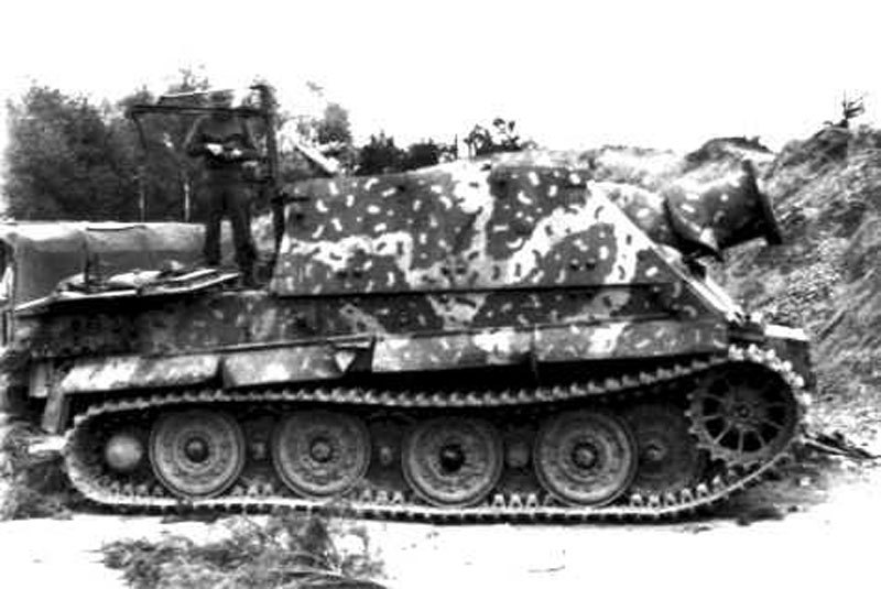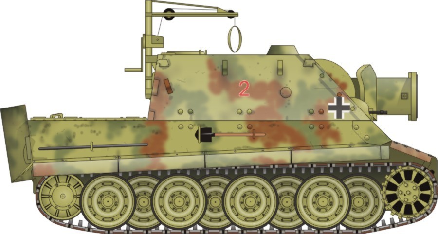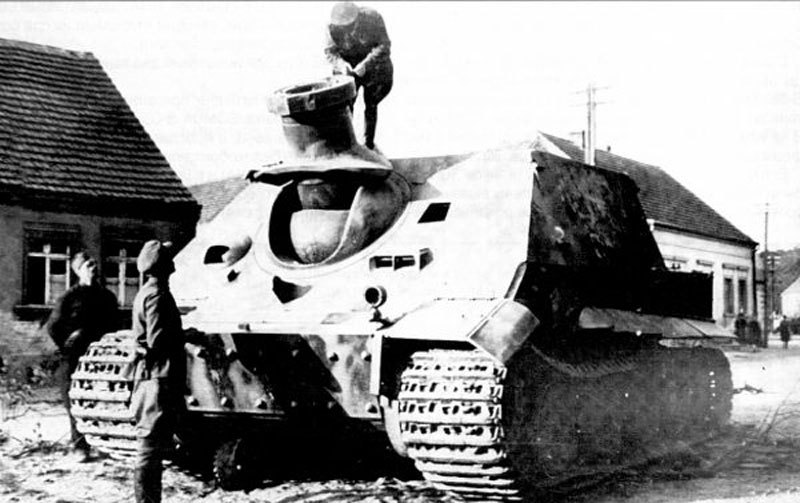 티거전차의 경우 워낙에 고가인 전차인데다가 장갑차체가 두꺼운 전차였기 때문에 재활용을 하는 경우가 많았는데 앞서 말했듯 수리가 가능한 전차는 수리해서 다시 내보냈지만 수리가 불가능한 티거들은 포탑을 제거하고 새로 짜진 전투실과 380밀리 로켓포를 장착하여 시가전 전용으로 사용하였습니다.