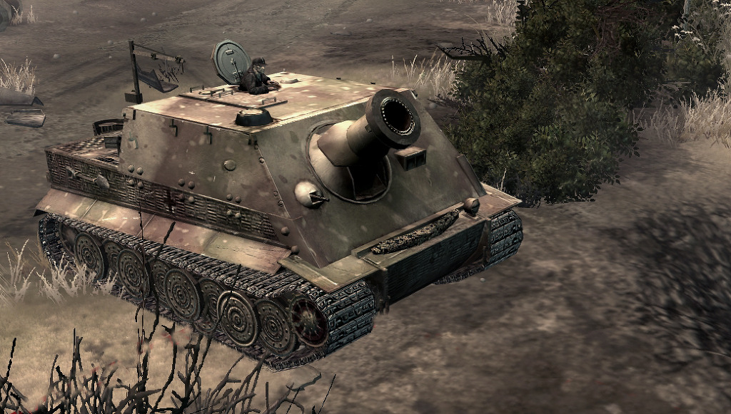 [슈투름티거(sturmtiger) : 티거의 차체에 큼지막한 전투실을 얹고, 여기에 해군에서 대잠폭뢰발사기로 쓰던 380mm 로켓포를 장착한 시가전용 돌격전차. 티거 이상의 두꺼운 장갑을 갖고 있어서 어지간한 공격으로는 꿈쩍하지도 않으며, 38cm 로켓발사기는 애초에 포격 대응 목적으로 구축한 장갑화 강화콘크리트 요새를 제외하면 포격에 가장 강한 구조물인 적벽돌을 두껍게 쌓아 만든 거대한 건물도 일격에 무너뜨릴 수 있었다]