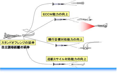 발사기체의 생존성, ECCM 능력, 사정거리의 향상, 고기동의 목표 대처 능력의 향상, 미사일 자체 유도 거리의 증가 및 가격의 저하를 목적으로 개발되었다. 덕티드 로켓 엔진의 장비나 시커의 AESA화 등도 목표로 하여 헤세이 14년도부터 개시해 19년도에 개발완료했다.