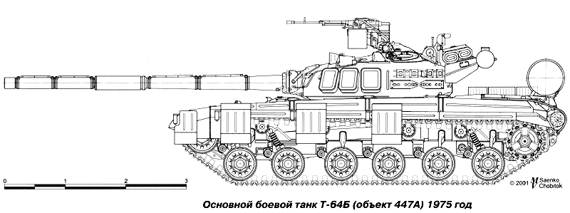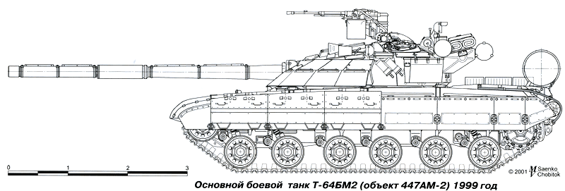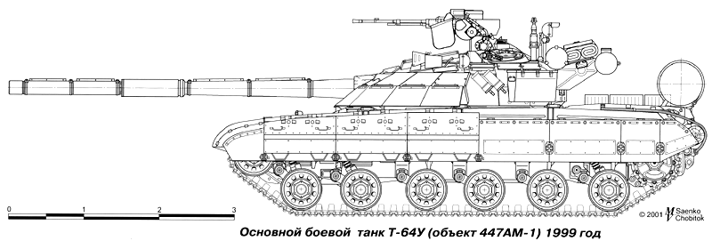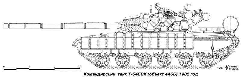 [T-64는 크고작은 고장으로 등장시부터 말이 많았다. 하지만 소련은 이 전차를 절대 포기하지 않았으며 수출도 불허했도 그리고 20여년간 꾸준히 개량하여 1980년대 중반에는 드디어 쓸만한 전차로 탈바꿈하는데 성공했지만.. 이때는 이미 3세대급의 전차들이 등장하던 시기라 T-64전차 역시 이들 3세대 전차의 기준에 맞게 장갑을 추가하는등의 개량이 가하지게 되었다 사진의 T-64BM 경우가 그런 경우로 강화된 반응장갑과 열영상장비등을 추가하여 3세대 전차급의 성능을 가지게 된 T-64전차중 하나이다.]