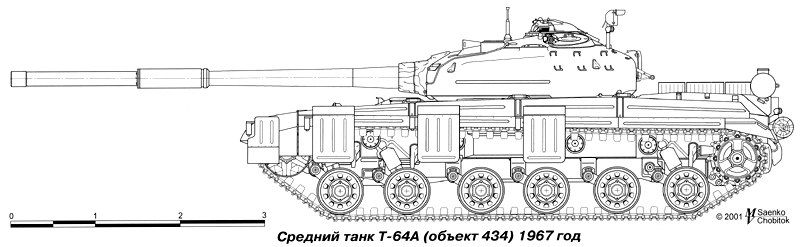 [새로운 중전차인 T-64는 기존 T-34로 부터 이어온 구소련전차들 T-54/55/62들이 저렴한 가격에 대량생산에 적합한 전차로 개발된것에 비해 (사실 성능은 서방제 전차들부터 확실히 떨어졌다) T-64전차를 구소련 최초의 하이믹스 개념을 도입한 고성능 첨단전차로 설계되었다]