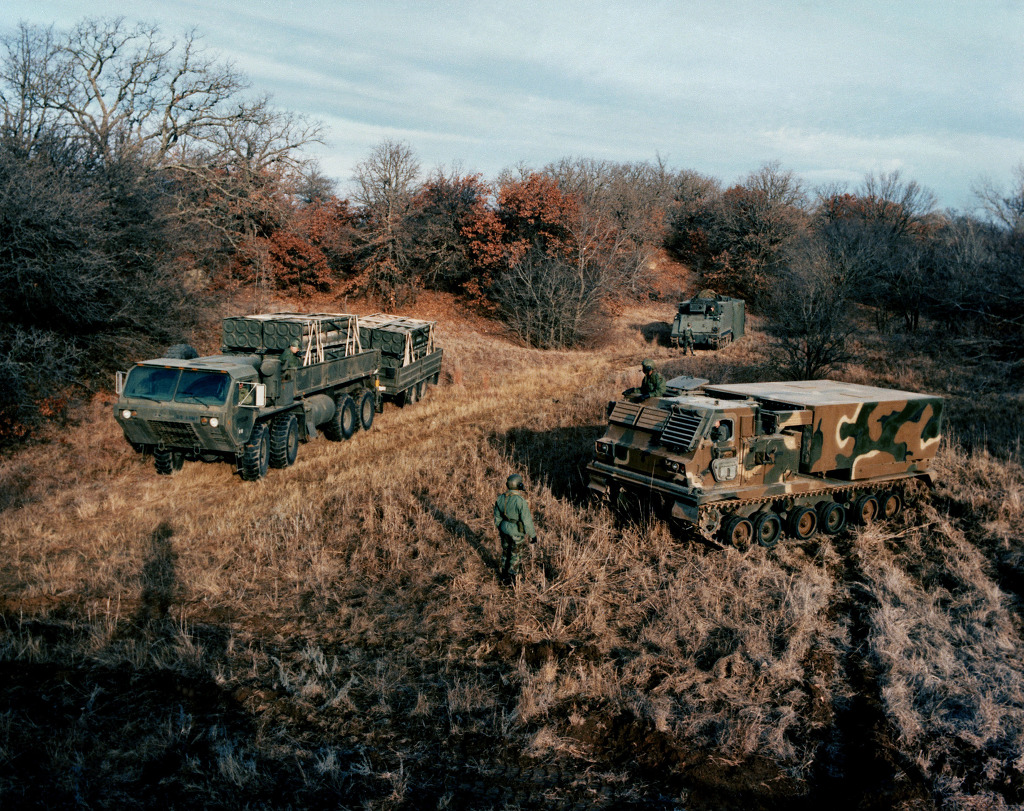 [강철의 비를 쏟아붓는 M270 Multiple Launch Rocket System (M270 MLRS)의 막대한 탄약을 채워줄 목적으로 설계 당시부터 M997 HEMTT (Heavy Expanded Mobility Tactical Truck) 를 탄약수송차로 염두해두었다]