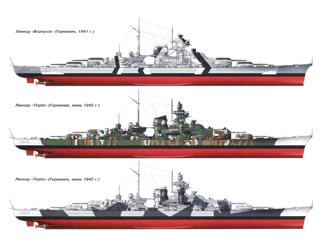 [비스마르크급은 당시 거함거포주의 영향을 받아 4만톤급의 함체에 52구경 38cm 연장포 8문(주포), 55구경 15cm 연장포 12문(부포), 65구경 10.5cm 연장포탑 8기, 83구경 37mm 연장고사포탑 8기, 수상기 4대로 무장한 그야말로 막강한 위력을 자랑했고 첫 출전에서 불침전함이라 불리던 영국해군의 후드를 단한방에 격침시킨것으로 그 위력을 확실하게 보여주였다]
