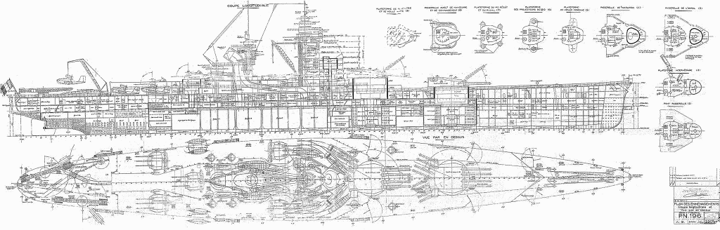 기준배수량 : 50,995t (만재 52,700t) 전체길이 : 247.99m 전체 폭 : 36.0m 홀수 : 10.8m 출력 : 150,175hp 최대속력 : 30.1kt 항속거리: 19kt로 8,525해리 승조원: 2,340명 주 엔진 : Brown-Boveri식 기어드 터빈 3기, 3축 추진(연료는 중유 7,400t) 무장 : 52구경 38cm 연장포 8문(주포), 55구경 15cm 연장포 12문(부포), 65구경 10.5cm 연장포탑 8기, 83구경 37mm 연장고사포탑 8기, 수상기 4대 |