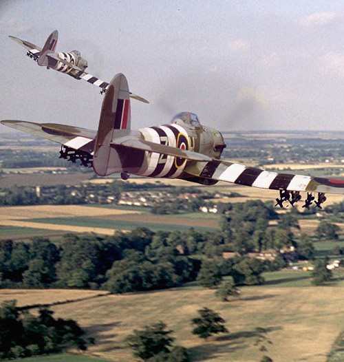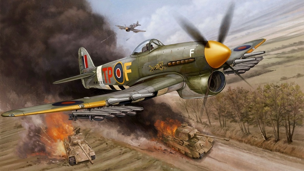 [대전후반에 가면 독일공군이 사실상 와해되어 더이상 독일공군기를 볼수없었는데 오히려 호커 타이푼 같은 공대지 임무에 탁월한 전투기들의 활약이 더 많아지게 되었다]