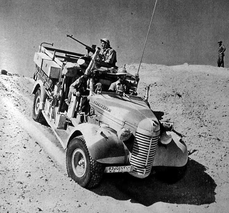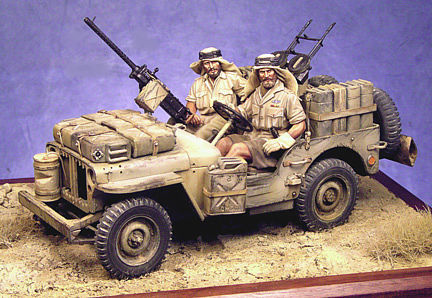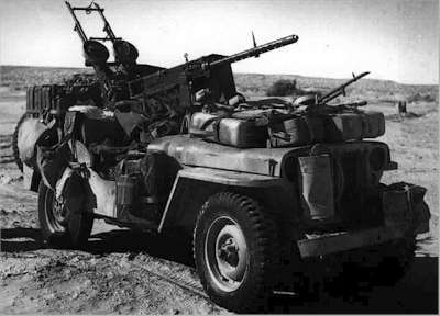 [LRDG들이 시보레 트럭과 더불어 애용했던것이 당시 미군으로부터 공여받은 JEEP로 비록 차체는 작았지반 튼튼하고 가벼워 사막의 이동수단으로 안성맞추이였다. 여기에 라지에이터의 수분을 재활용하는 과급기들을 개조해 달고 여러무장을 추가하여 그들만의 무기를 만들어내었는데 이는 훗날 SAS들의 주무기로 애용되기도 하였다]
