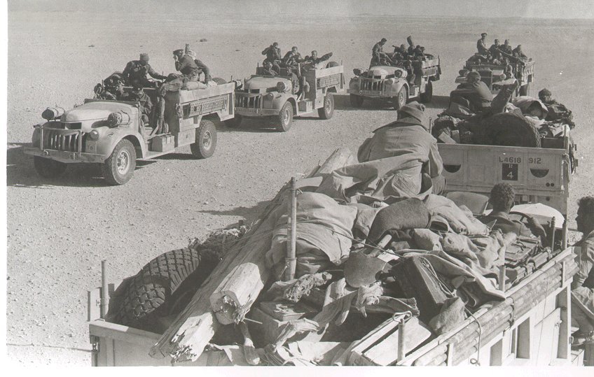 [SAS의 스승으로 사막에서의 생존방법을 알려준 장거리 정찰대(L.R.D.G) 의 모습 2차대전중 사막에서의 정찰을 위해 만들어진 부대로 장거리정찰에 걸맞게 대형트럭 (주로 시보레 트럭을 이용) 을 이용한 작전을 많이펼쳤는데 이들은 사막부족이상의 사막에 관한 전문가로 SAS들은 이들과 함께 하면서 사막에 관한 전문지식을 습득하고 또 작전은 SAS가 이동은 장거리 정찰대(L.R.D.G)들이 해주는등 협동작전을 많이 펼치게 되었다]