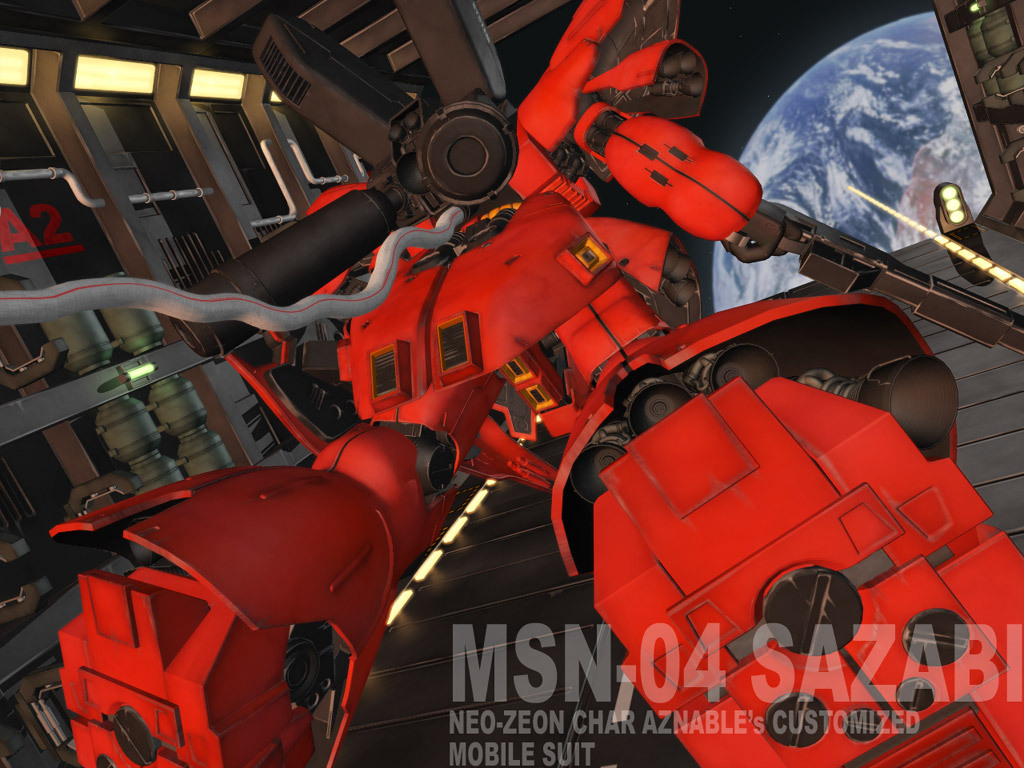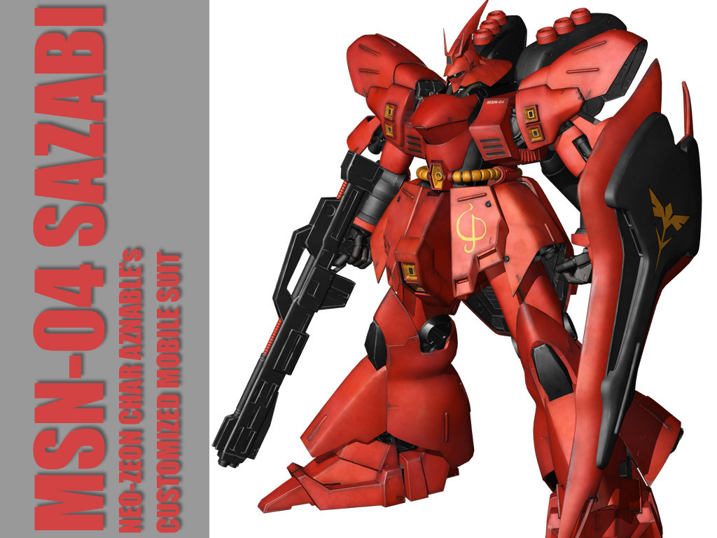 MSN-04 SAZABI 사자비(サザビー) 높이 - 중량 - 30.5톤 출력 - 3960Kw 추력 - 133,000kg 재질 - 건다리움 감마 합금 (건다리움 합금 참조) 파일럿 - 샤아 아즈나블 디자이너 - 이즈부치 유타카 무장