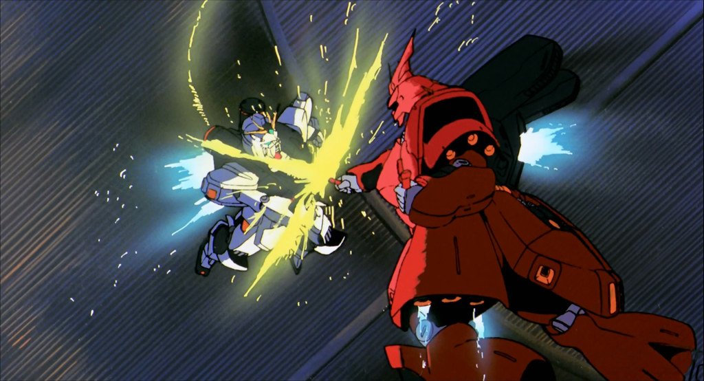 애초에 샤아에게는 이 시점에서 아무로를 쓰러트릴 생각은 없었기 때문에 좋은 빌미[2]가 된 셈. 그 후로는 액시즈를 둘러싸고 론드벨과 교전하여 액시즈를 재점화시키는 것에 성공한다. 판넬을 이용하여 액시즈를 공격하는 핵미사일을 격추시키는 것에도 성공한다.