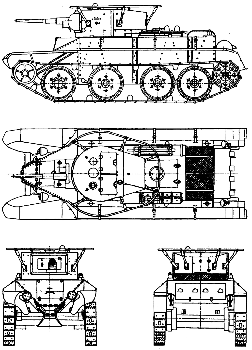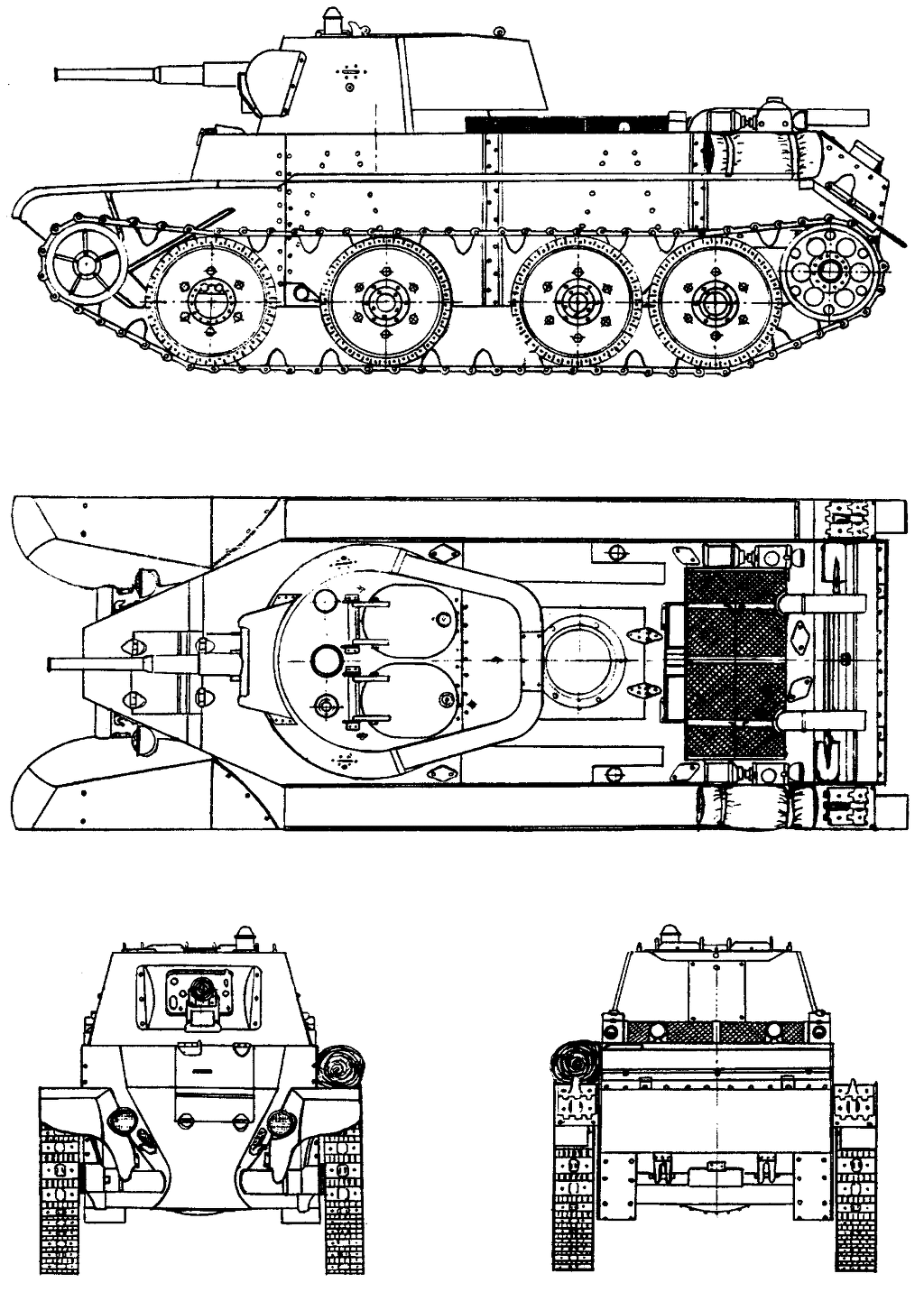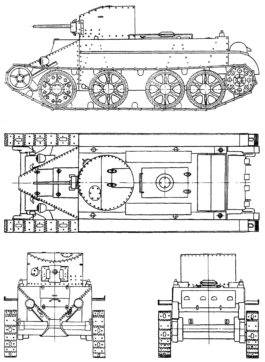 위의 사진은 BT 전차의 대표형인 BT-7로, 제원은 아래와 같다.