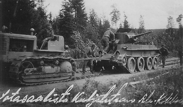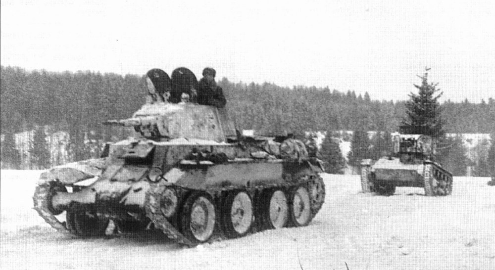 [BT전차는 크리스티나의 전차를 설계를 베이스로 당시 러시아의 기술력에 맞게 개량한 버젼이였다 사진은 눈위를 주행중인 BT-7M 전차와 후방의 T-26경전차의 모습]