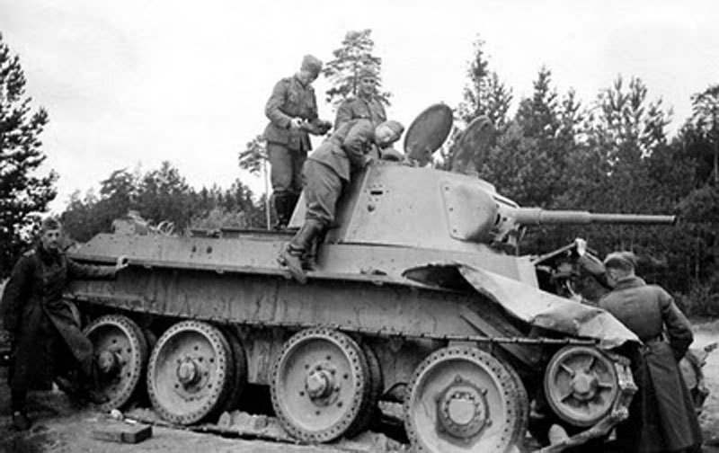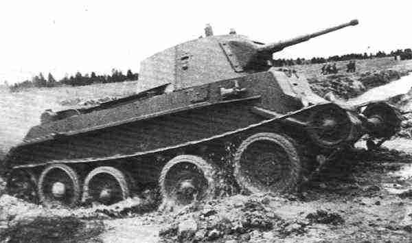 [개전초기 소련전차의 다수를 차지하던것이 바로 BT전차였는데 우수한 독일전차들에게 줄줄히 당해나갔고 이로인해 신형전차 (T-34) 의 개발이 빠르게 진행되는 계기가 되었다]