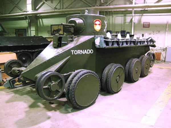 [크리스타 현가장치를 장착한 최초의 전차 토네이도 지금에도 따라올수 없는 시속 70킬로 이상의 고속이동이 가능한 전차로 특이하게 도로상에서는 궤도를 모두 벗지고 차륜으로 이동이 가능했다 하지만 당시 전차에 대해 그리 중요성을 체감하지 못한 미국과 영국장성들에 (전차는 그저 보병과 발을 맞추며 지원만 해주면된다는 생각) 의해 푸대접을 받았으며 이에 격분한 크리스티나는 이전차의 설계와 현가장치 모두를 당시 러시아에 모두 팔아치우게 된다. BT 전차를 이 전차를 베이스로 러시아 사정에 맞게 개량한것이였다]