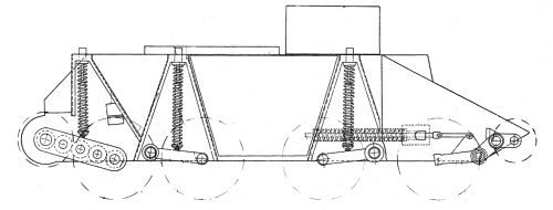 [고속이동이 가능했던 크리스티나 현가장치의 모습 오늘날 전차의 현가장치로 사용되는 스프링현가장치 방식의 원조격인 뛰어난 설계로 수십톤의 전차를 시속 70킬로이상으로 이동시킬수 있는 주된 기술적 요인이 되었다]