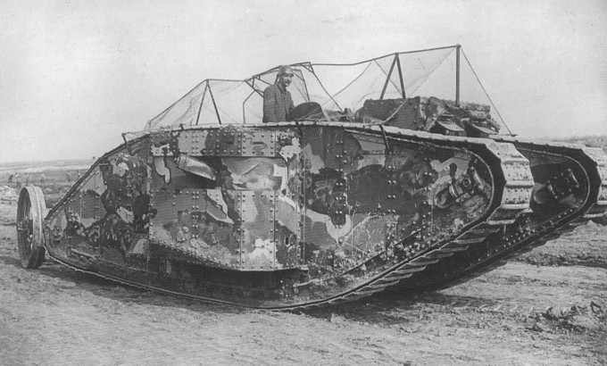 [실전에 투입된 최초의 전차로 알려진 MK 시리즈는 원래 스윈튼(Ernest Dunlop Swinton)이라는 공병장교가 무한궤도를 이용한 장갑차량을 새로 개발해서 참호를 돌파하자는 아이디어를 내놓았는데 정작 영국 육군성에서는 이 의견에 퇴짜를 놓았으므로 그의 야심찬 아이디어는 그대로 사장되나싶었는데 당시 해군장관이었던 윈스턴 처칠이 이 아이디어를 채용, 육상전함으로 개발하게 되며, 이것이 좀 더 실용적으로 바뀌면서 나온 물건이 바로 Water Carrier라는 이름의 장갑차량으로, 이것이 현대 전차의 조상인 Mk 시리즈 가 된다 사진은 MK5의 모습 이때만해도 영국은 전차의 종주국으로 잘 나가나 싶었는데..]