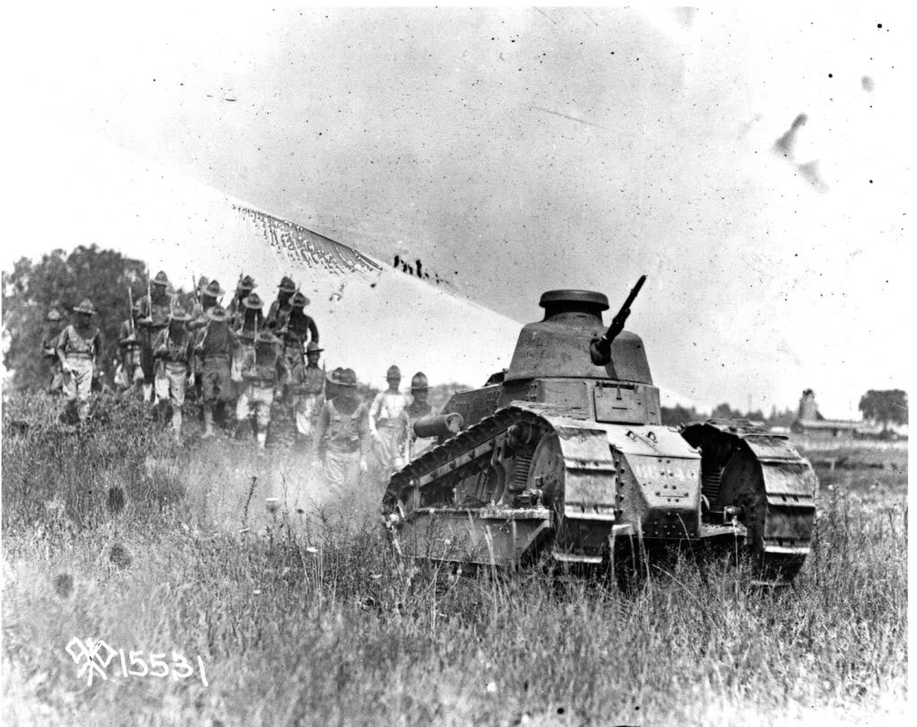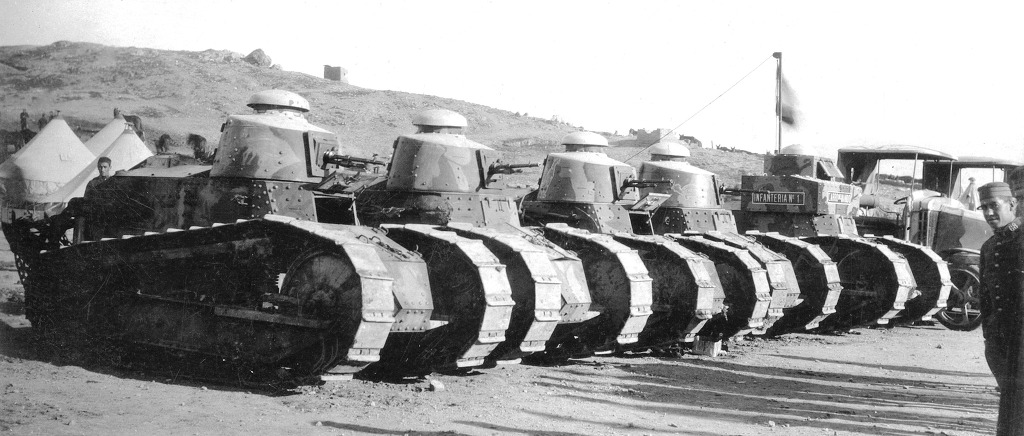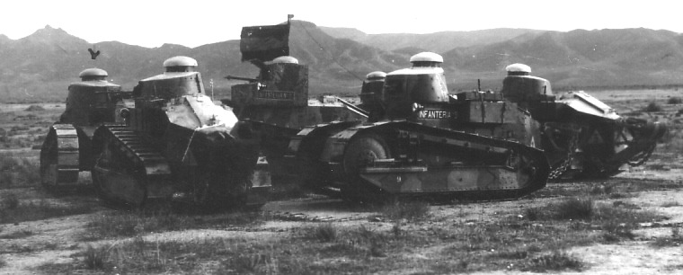 [열을 지어 주행중인 FT-17의 모습 생긴건 좀 그렇치만 르노 FT-17 전차는 오늘날 전차의 기본이 되는 회원포탑과 큐폴라의 도입등의 전차개발사상을 확립한 혁신을 가져온 물건으로 생산댓수만 5천대가 넘는 그야말로 당시 베스트셀러 전차중 하나였다]