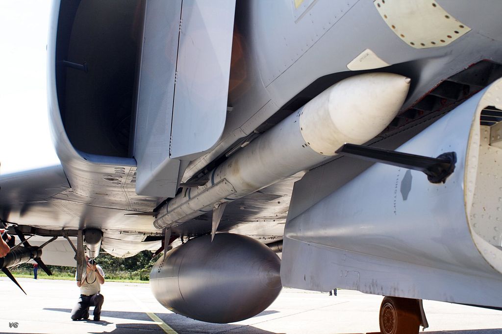 [F-4F ICE 타입의 가장 큰 특징중 하나는 APG-65 레이다의 교체로 AIM-120B 암람 같은 신형 중거리 미사일의 운영이 가능해졌다는 점이다. 암람 미사일의 발사가능은 기체의 성능을 비약적으로 증대시켜준 중요한 포인트이다]