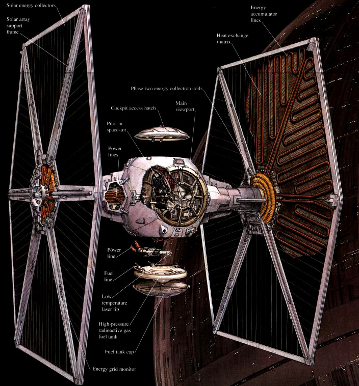 [타이 파이터는 특히 조종사의 환경을 생각하지 않은 악랄한 설계로 원성이 자자했는데 작은크기에 맞게 조종석이 좁았으며 특히 조종사들은 별도의 생존장치를 장착하고 탑승했어야 했다]