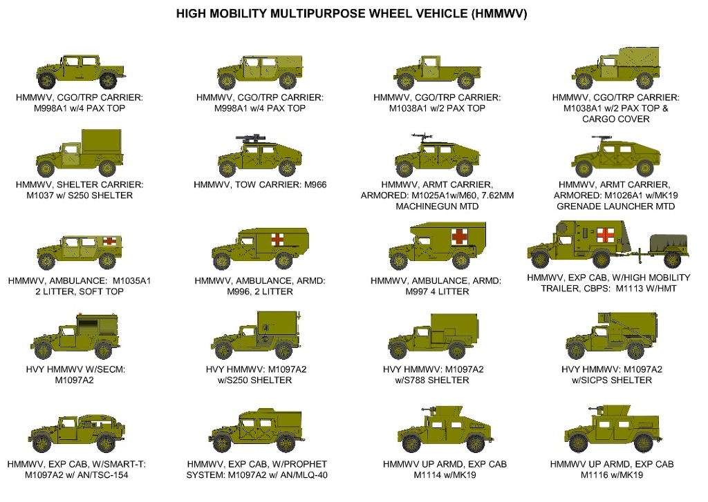 미군이 80년대부터 사용하고 있는 군용 차량으로 AM제네럴사가 제작했다.