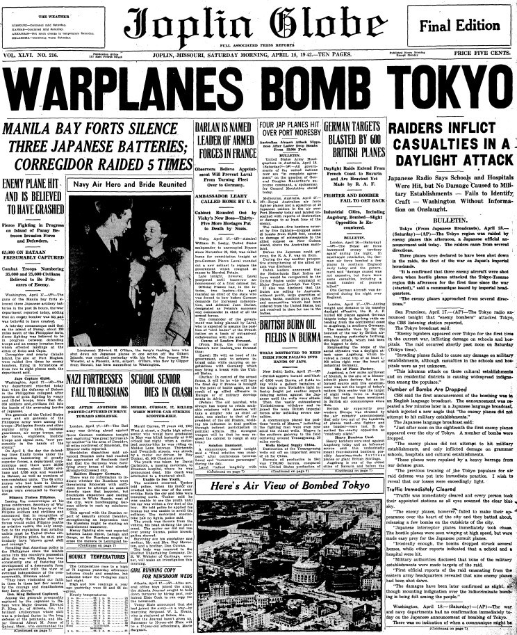 [1941년 12월7일 진주만 공습 이후 미군의 사기는 바닥까지 떨어졌고, 루즈벨트 대통령은 이러한 국면을 반전시키기 위한 보복 공격을 빨리 시행하라고 군 수뇌부를 날마다 질책하고 있었다. 사진은 진주만 공습 당시 일본군 항공기에서 찍은 사진]