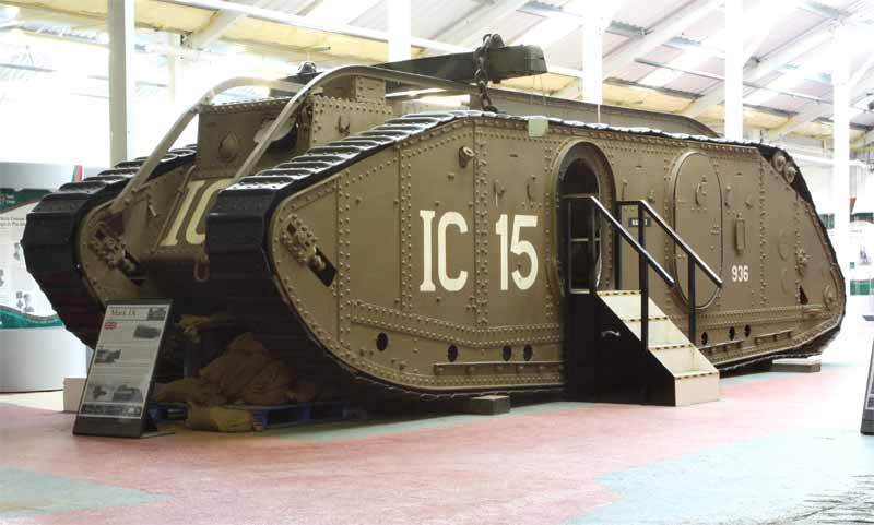 [최초의 전차인 영국의 Mk 시리즈는 "육상전함"이라는 컨셉으로 개발해서 참호 돌파용으로 개발했다. Mk I "mother"부터 Mk VIII까지 있으며 가장 많이 만든 것은 Mk IV 버전이다. Mk IV까지는 기어 변속 및 방향 전환에 3~4명이나 필요했지만, 이후 개량을 거쳐서 조종수 혼자 기어 변속과 방향전환을 할 수 있다. 대부분의 모델에 포와 기관총으로 무장한 '숫놈'과 기관총만으로 무장한 '암놈'이 있다.]