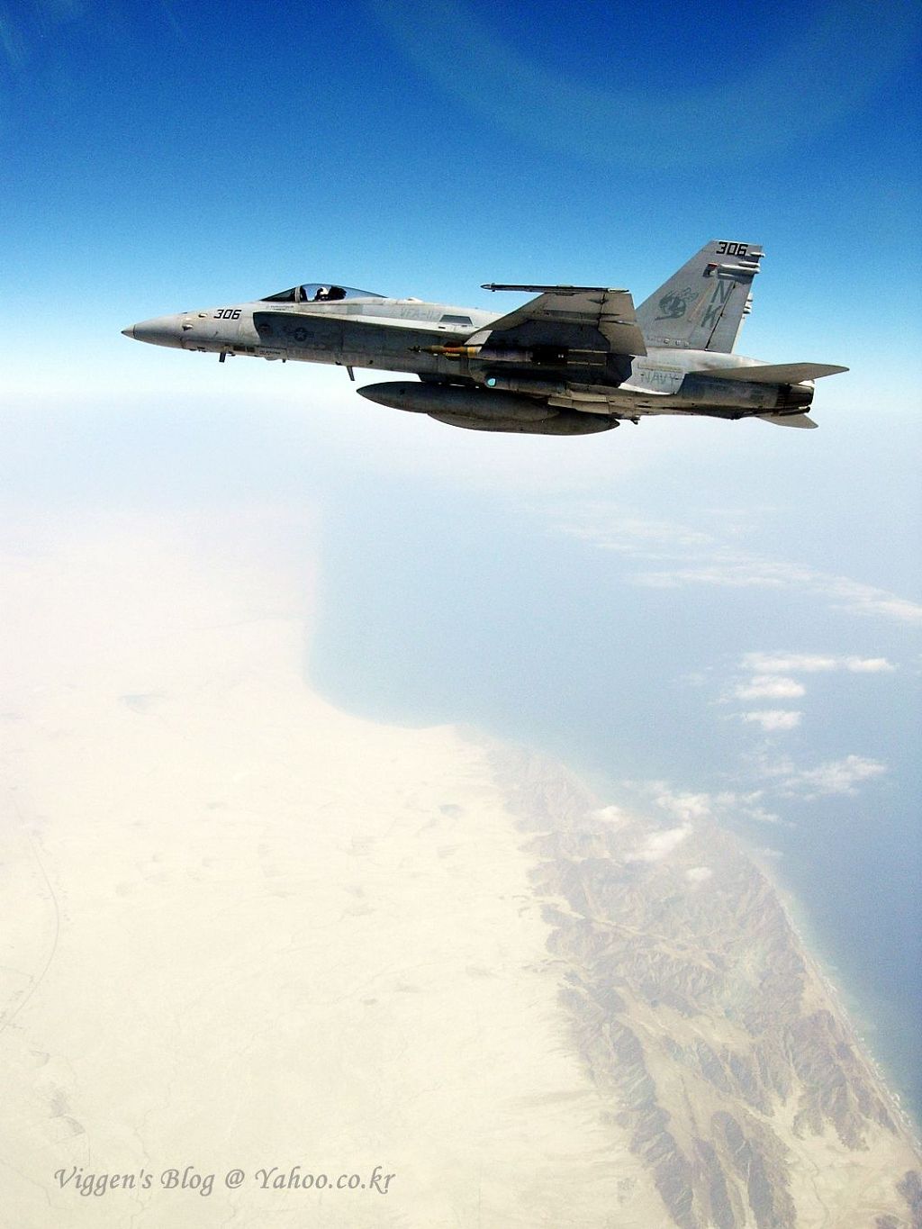 [이라크 상공위를 선회중인 F/A-18C 호넷의 모습 무장으로 보아 CAS 임무중인듯 하다]