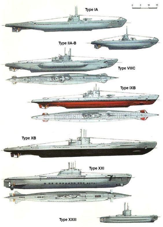 다양한 파생형들이 존재하는데, 정찰이나 기뢰 부설을 맡았던 초경량급 2형[16], 전략초계 임무를 수행한 주 작전을 맡은 주력함인 7형과 9형이 있었고 대전 후반기에는 궁극의 개량형인 21형이 등장한다.