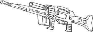Optional hand armaments: GAT-22 30mm heavy machine gun w/grenade launcher; GAT-49min 50mm Pentatrooper; SAT-03 60mm solid shooter bazooka; GAT-35 long gun