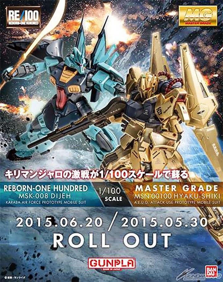 그런데 2014년 11월 건프라 엑스포에서 RE-1/100 등급의 발매가 확정되었다. # 발매일은 2015년 6월 20일. 부속된 내용물을 보면 아무로의 상징인 A+유니콘이 씰로 들어가있다.# 발매후 반응은 준수한 무등급 이상 MG 이하의 퀄리티라고 한다.무기는 MG 백식 2.0의 런너를 공유하고 일부 백식 2.0 런너에 포함된 부품은 디제쪽 런너에 RE:100등급에 맞춰서 포함되어있다.