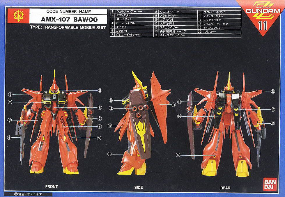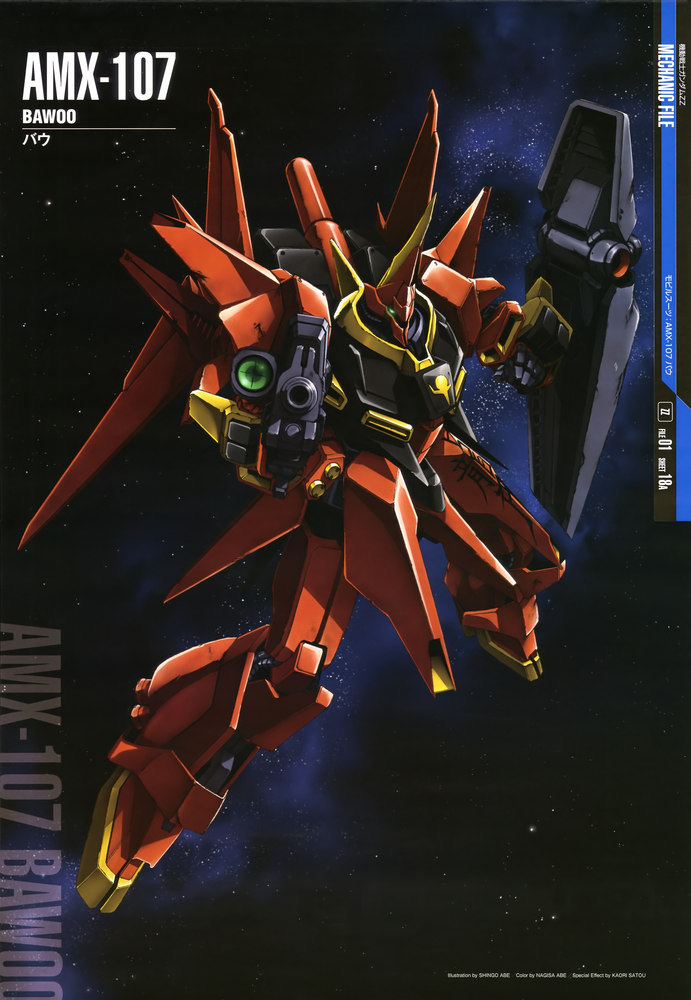 요즘 다시 정독중인 건담 애니 그중 ZZ 제타편을 보고 있는데 (올해안에 ZZ VER KA 가 나온다길래..) 이중 악역으로 등장하는 기체인 AMX-107 Bawoo (바우) 를 소개합니다.