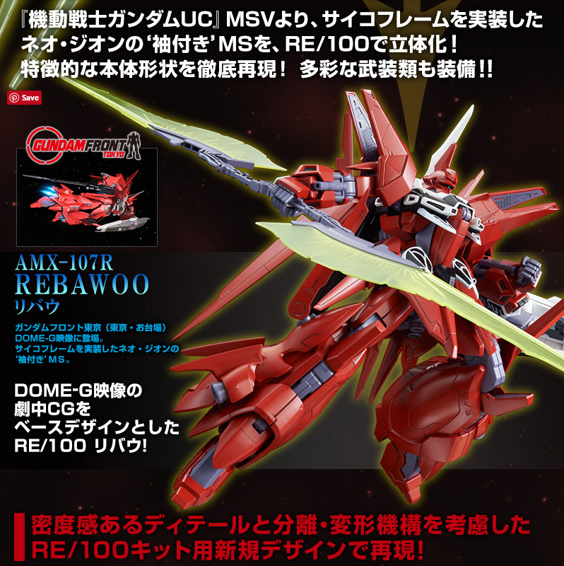 RE/100으로 발매가 확정됐다. 2016년 11월 26일 발매, 가격은 3,500엔. 건담베이스 기준 42,000원. 소식이 공개되고 얼마 안 있어 RE/100 리바우도 프리미엄 반다이 한정으로 공개되었다.(4,200엔, 클럽G 가격 50,400원) 이프리트改의 바리에이션인 이프리트 슈나우드의 선례를 볼때 빠르게 한정판이 공개된 경우.