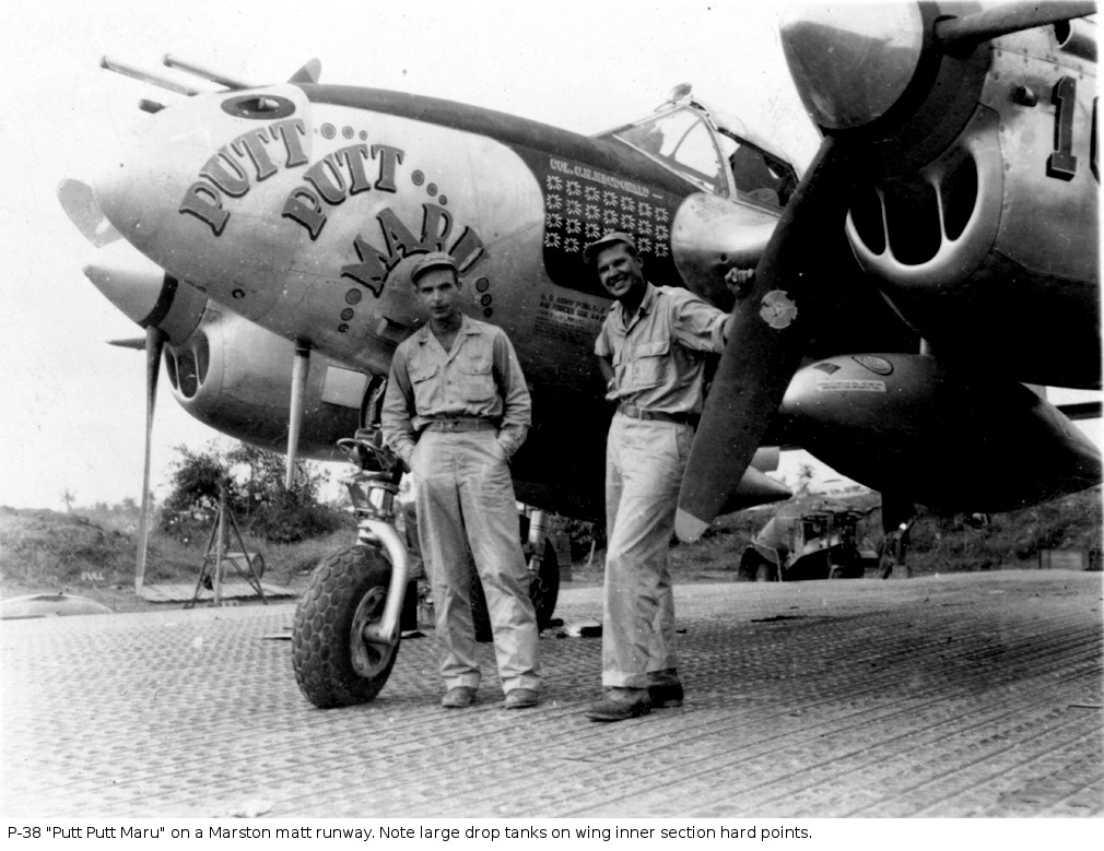 태평양 전역에서 P-38의 최초의 성공적인 전투로 기록된 것은, 1942년 12월 27일 파푸아 뉴기니 포트 모르즈비 상공에서 벌어진 전투로, 제 35 전투기 전대 소속 제 39 비행대대는, 11기의 일본기 격추를 보고했다. 반면 P-38은 단 한 기를 잃었다. 11기 중 2기를 격추한 파일럿은, 이후 40기의 일본기를 격추시키며 P-38 에이스를 명성을 떨치게 되는 리처드 "딕" 봉 Richard "Dick" Bong 이었다. 그를 포함해서, 태평양 전선의 미 육군항공대 에이스 다수가 P-38로 전과를 올렸다.[9]