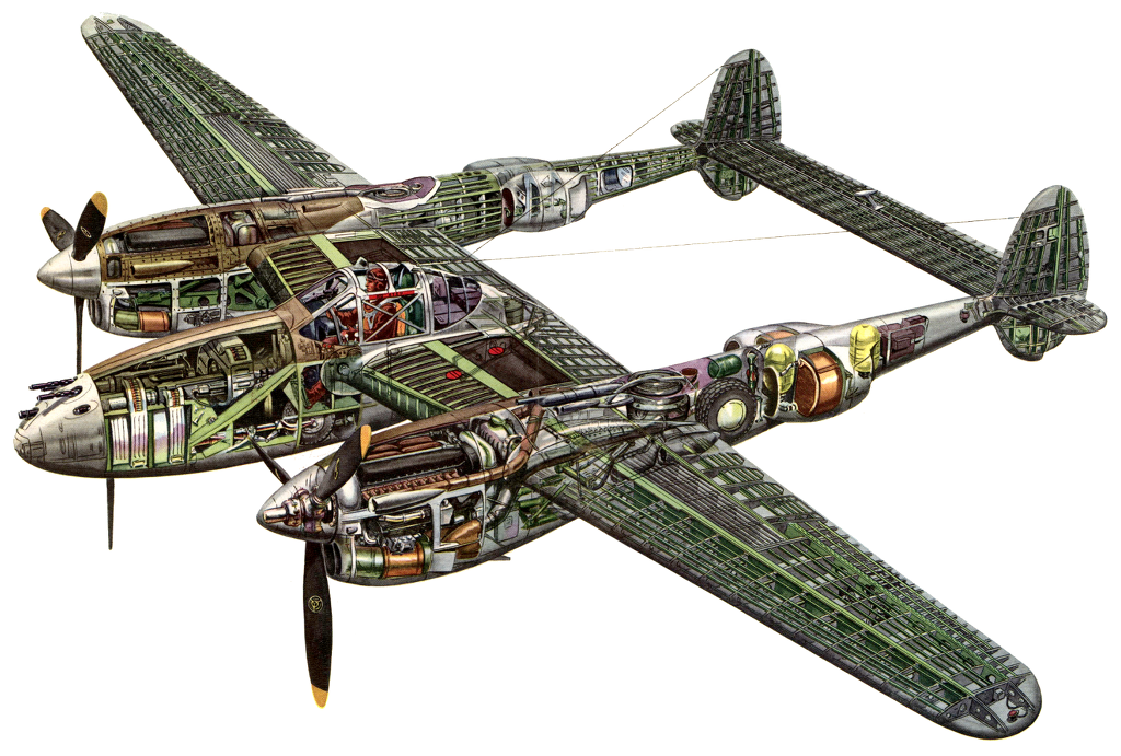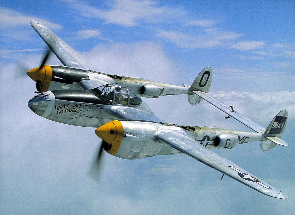 제2차 세계대전 당시의 미국 육군 항공대의 전투기. 특이하게 달린 쌍발엔진이 특징으로 이 덕분에 '쌍꼬리의 악마(fork-tailed devil)'란 별명을 얻었다. 기관총 등의 무장이 기수의 콧등에 몰려 있어서 명중률이 높았으며 일반적인 전투기의 몸통이 있어야 할 곳이 텅텅 비어있고 장갑도 비교적 튼튼해 의외로 생존율도 괜찮았다. 설계자는 스컹크 웍스의 초대 보스로 유명한 켈리 존슨.