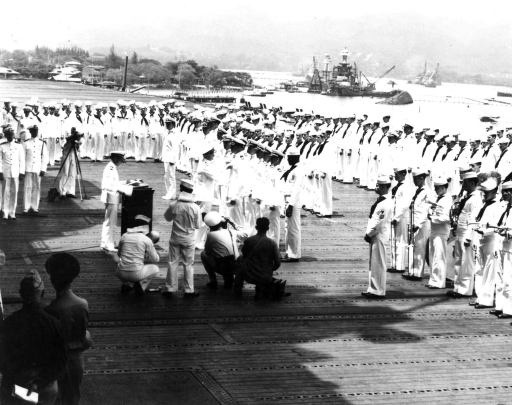 1943년 2월 대혈투가 끝나고 과달카날을 미군이 완전히 확보한 걸 본 엔터프라이즈는 에스피리투산토에서 잠시 휴식을 취한 뒤 진주만으로 귀환하여 신규 비행대 훈련에 힘쓰던 중, 1943년 5월 27일에 미 합중국 대통령이 니미츠 제독에게 감사장을 수여한다. 이것은 미군 항공모함 중에서는 사상 최초다.The Presidential Unit Citation