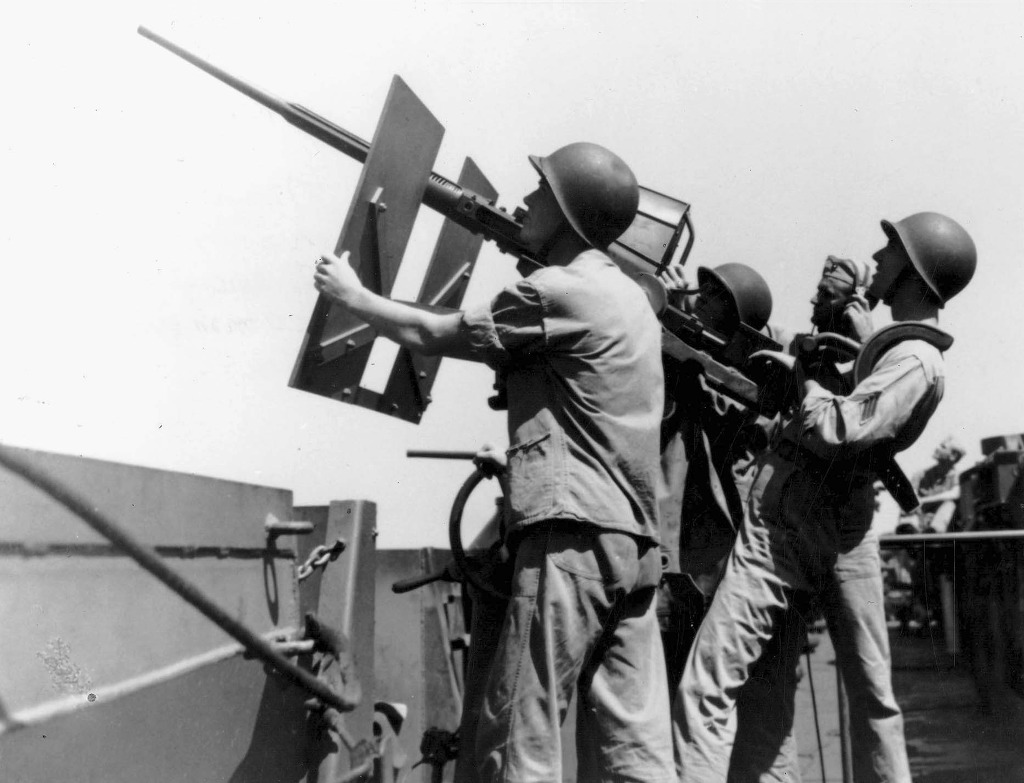 1945년 - 5인치 38구경 양용포 8문, 40mm 기관포 54문, 20mm 기관포 32문 등으로 증가된다. 사진은 20밀리 기관포의 모습]